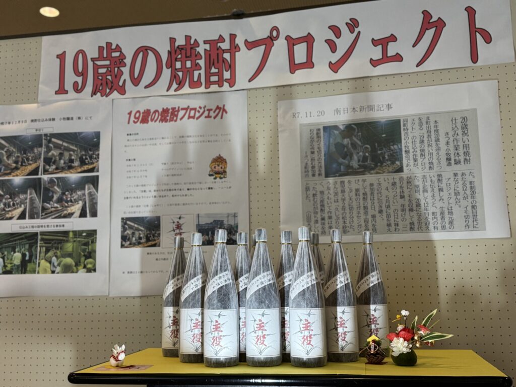 晴れ渡る空のもと、#さつま町二十歳のつどい が開催され、#19歳の焼酎プロジェクト も焼酎のお披露目と活動報告を行いました。